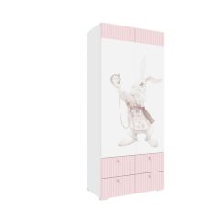 Детская Алиса ПМ-332.22 исп.3 Шкаф комбинированный (с 4 ящ. и 2 дв.) белый матовый с ФП-розовый